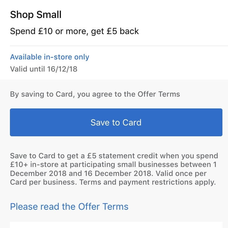 Simply click the ‘Save Offer to Card’ button and register the offer to your American Express Card. You can do this right up until the last day of the offer which is Sunday 22nd December 2019.